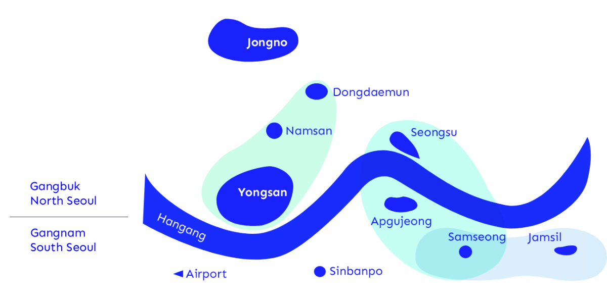 Gangnam (The South): The pinnacle of modern Seoul—sleek, sophisticated, and perfectly organized.
